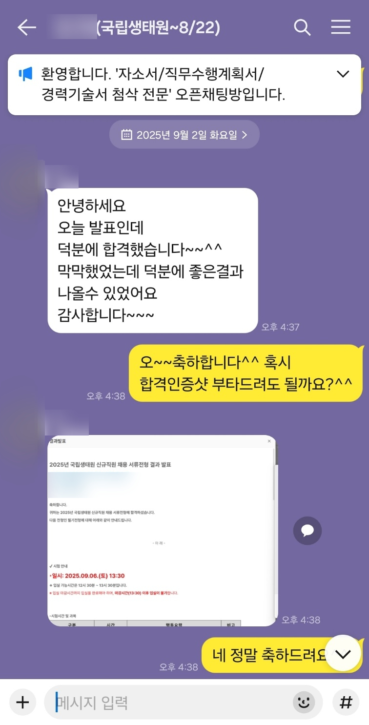 [서류합격] 국립생태원 자소서 첨삭후기