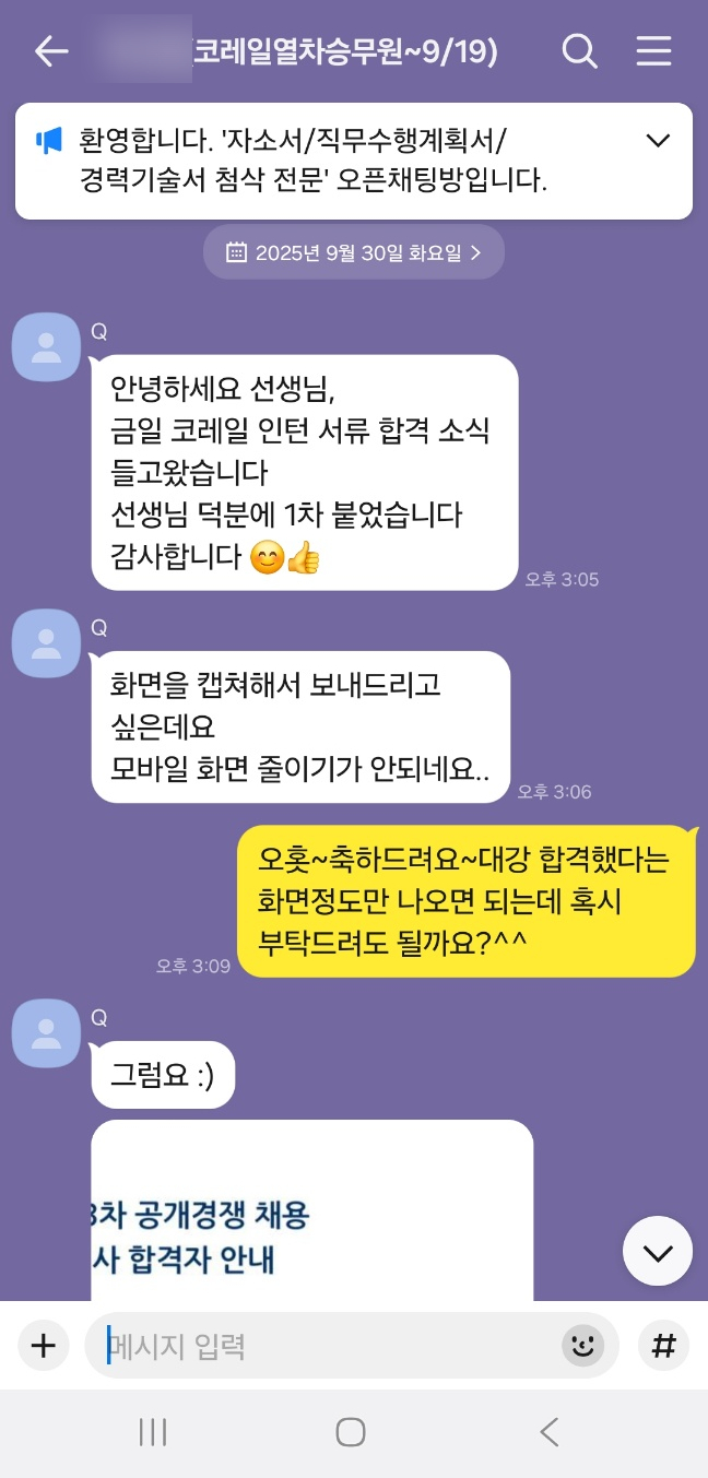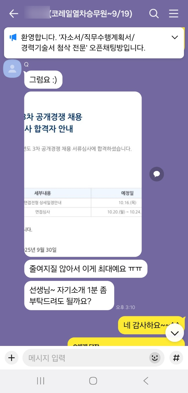 [서류합격] KTX열차승무원 자소서 첨삭후기
