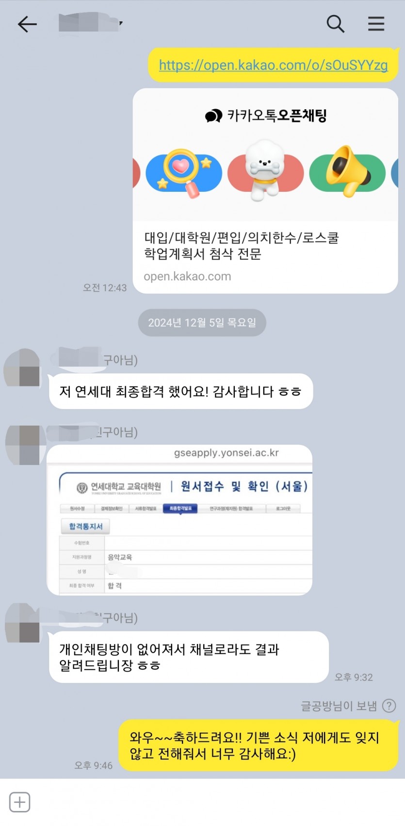 연세대학교 교육대학원 학업계획서 첨삭후기