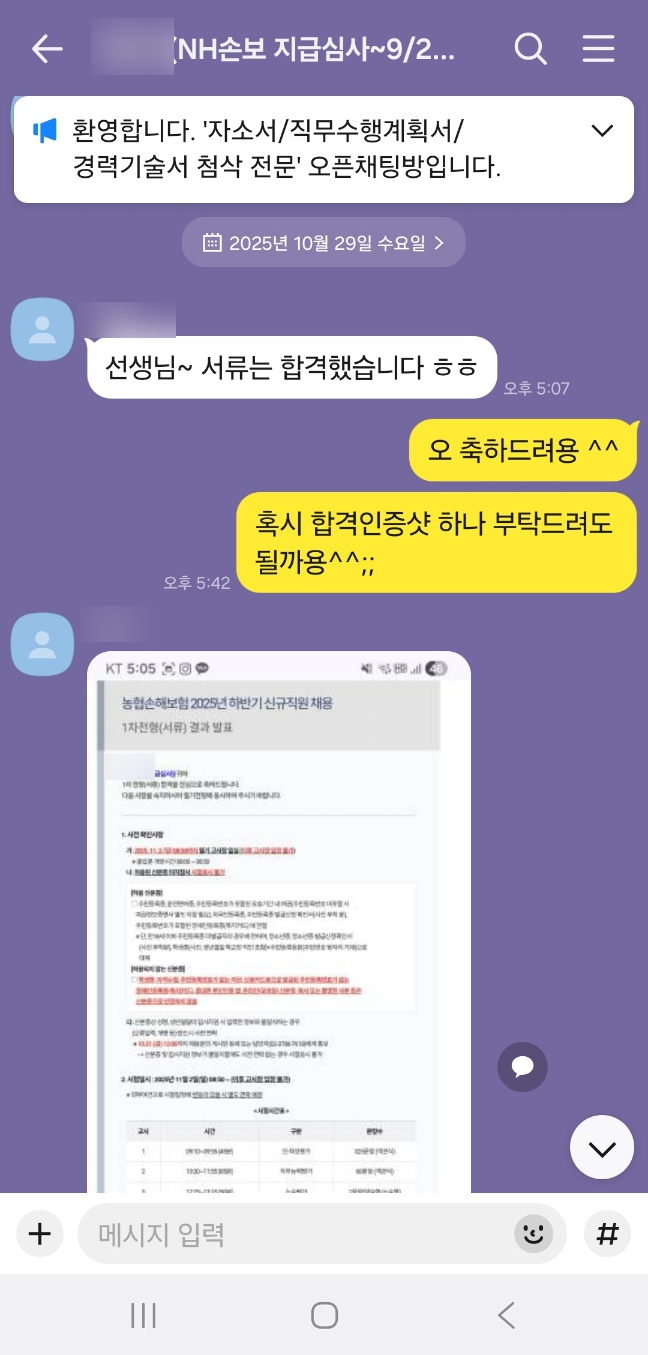 [서류합격] NH농협손해보험 자소서 첨삭후기
