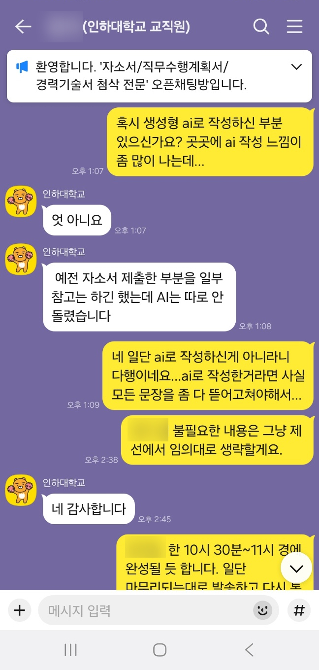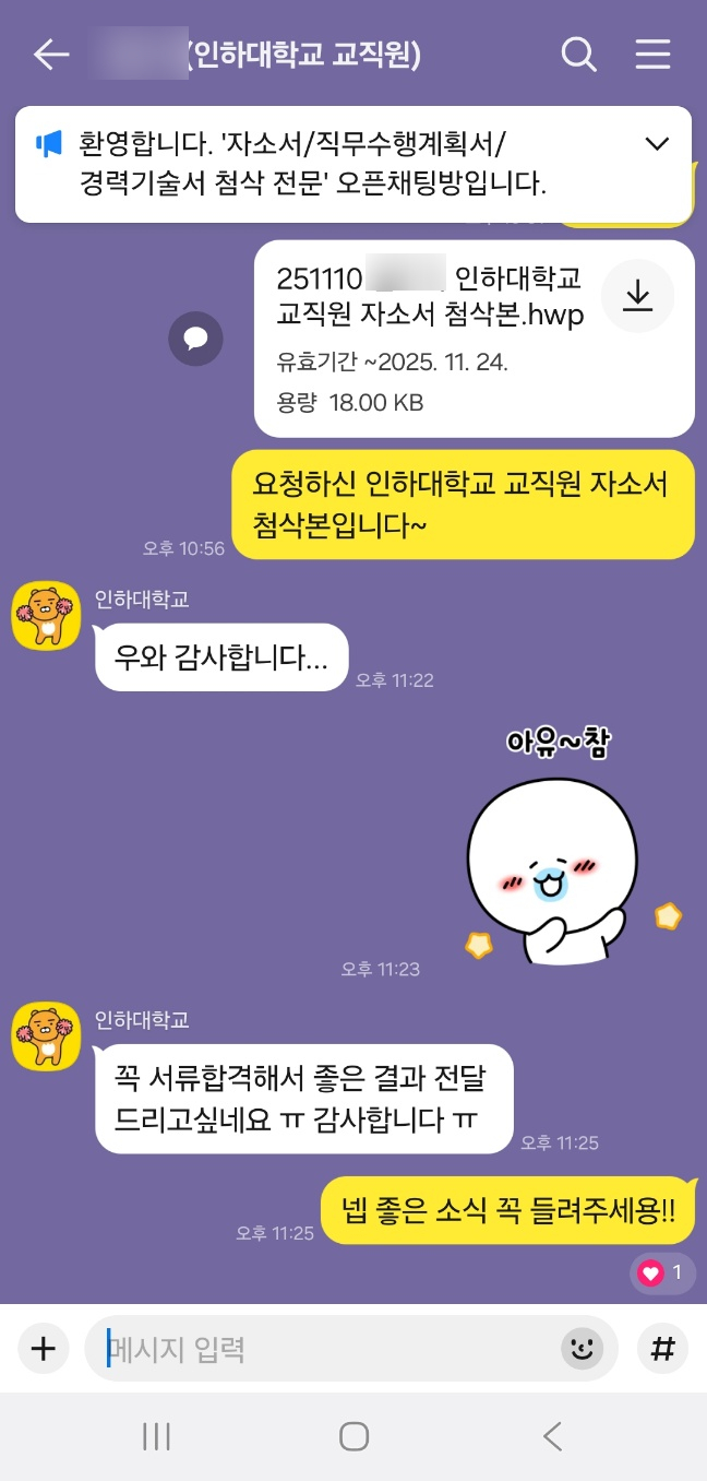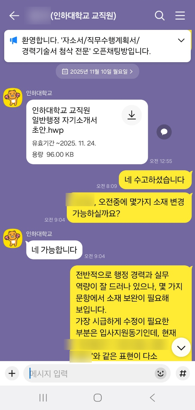 [첨삭후기] 대학교 교직원 자소서 첨삭후기
