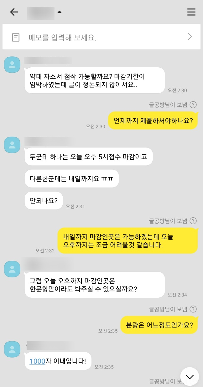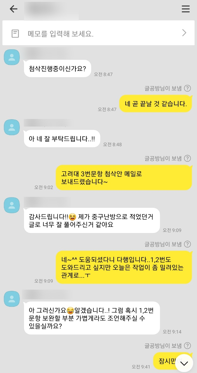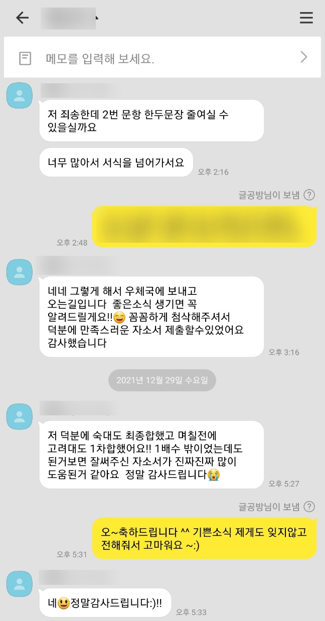 [첨삭후기] 대학교 교직원 자소서 첨삭후기