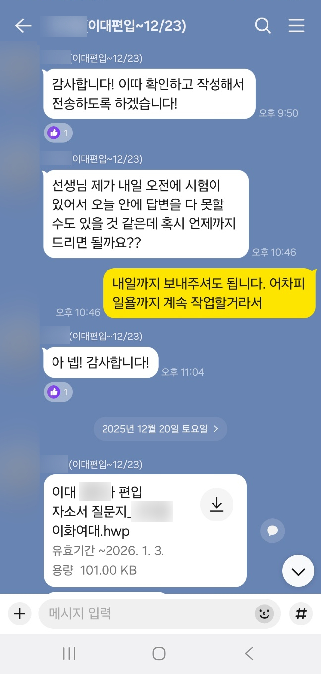 [최종합격] 한양대 편입 자소서 첨삭후기