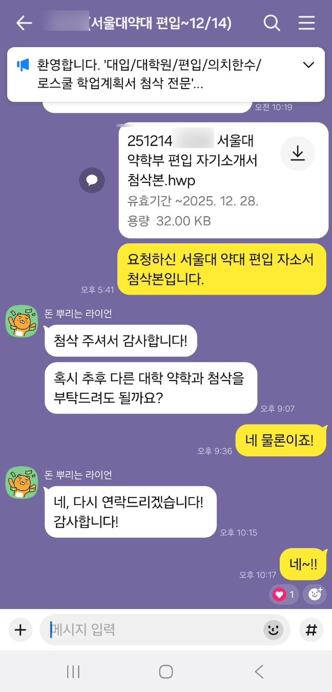 [최종합격] 서울대 치의학전문대학원 자소서 첨삭후기